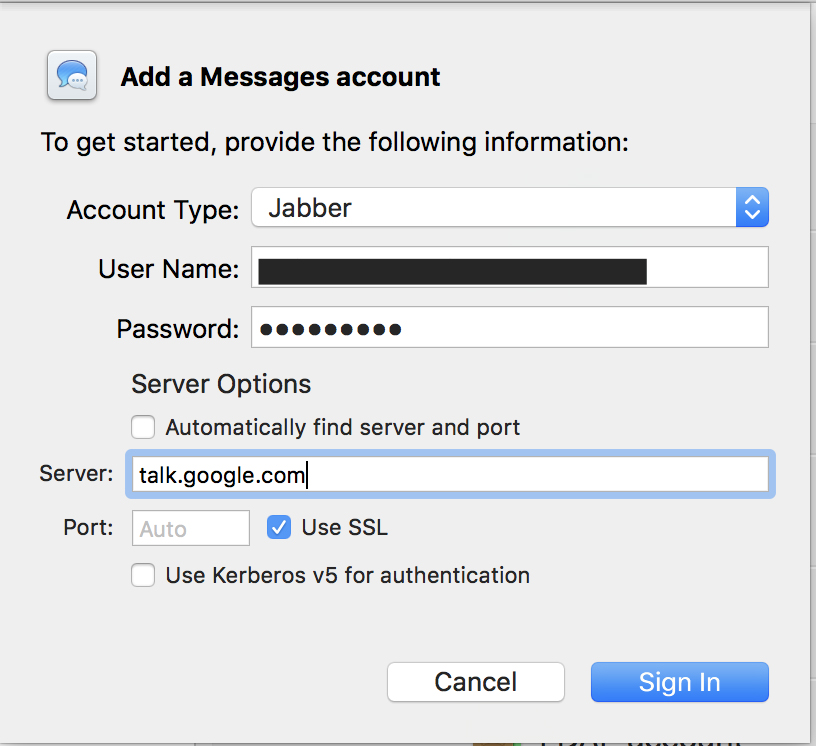 The Messages app doesn't work with Google Talk after I upgraded to latest version of MacOS - High Sierra. Now when I attempt to use Messages to chat via Gchat, I get the error "Support for the targeted service Google Talk has been discontinued". This is not a change on the Google side of things. This is specifically related to MacOS. I have other computers not upgraded where it DOES work.