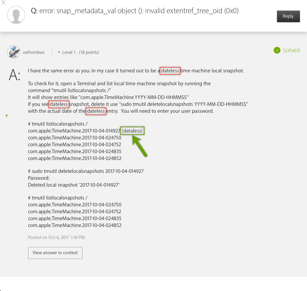 # sudo tmutil deletelocalsnapshots 2017-10-04-014927