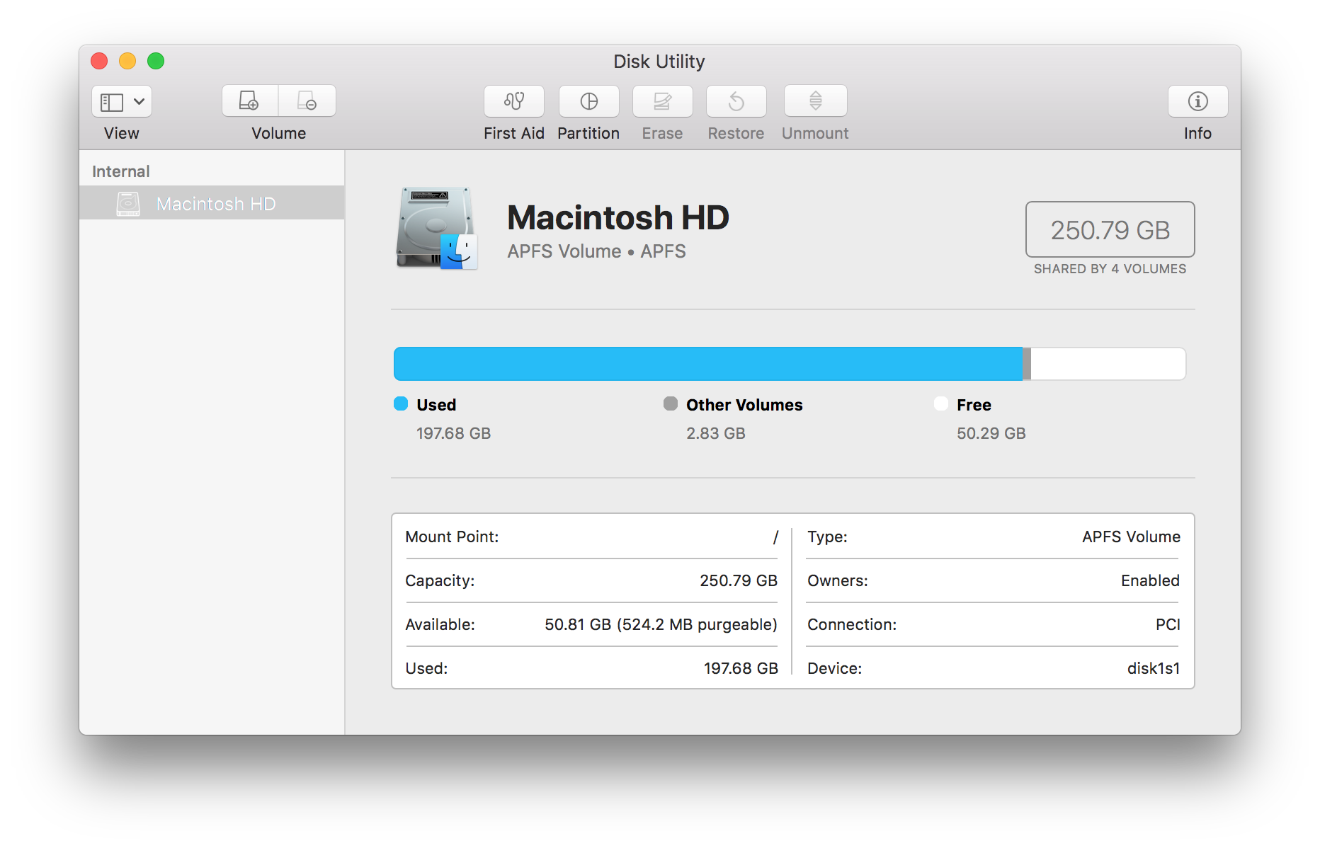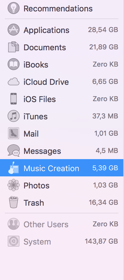 High Sierra disk space over 120Gb