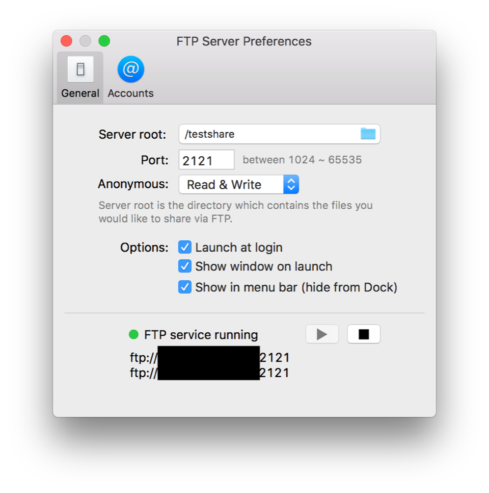 It sets up a really simple FTP server right out of the box. I put a screenshot here so you can see it. Just choose the folder you would like to use as the root folder for your files, then put a folder inside that folder for whatever you need.
