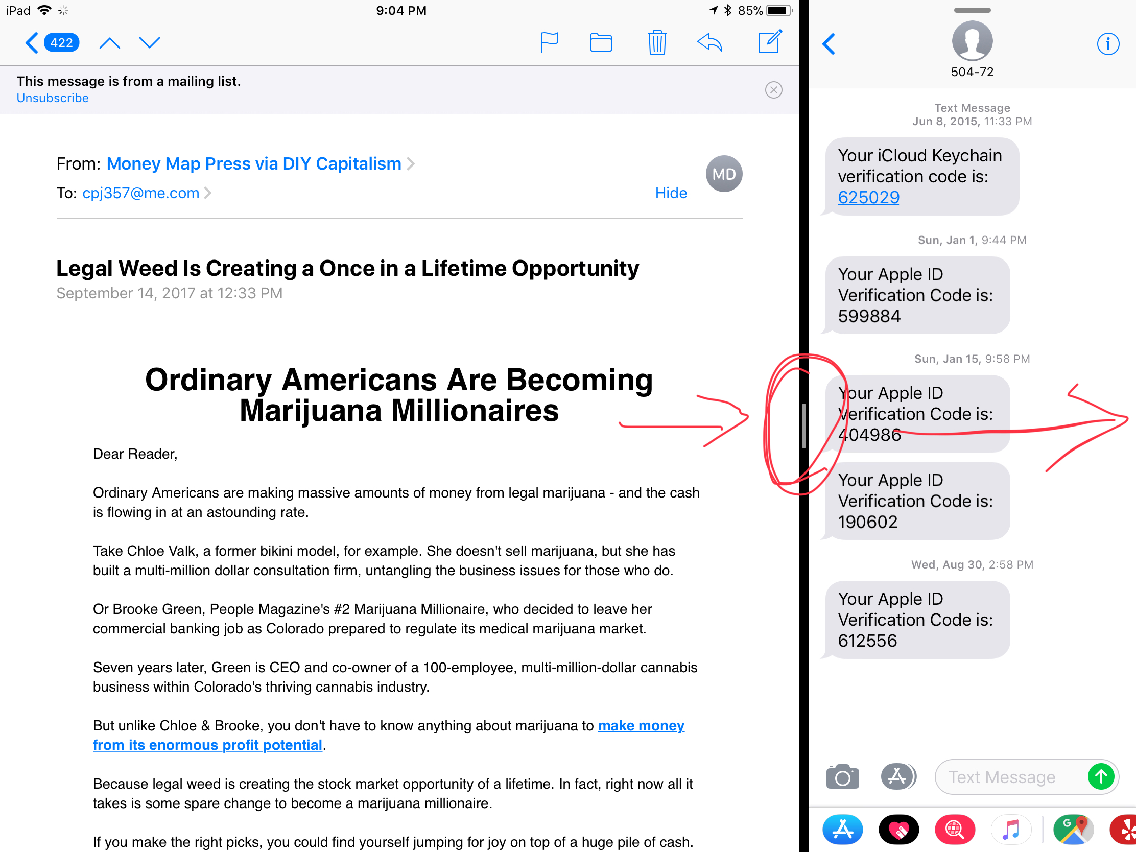 my screen is being split while I'm on my email or texting on my iPad. So when I'm on my text messages I can see my inbox whike I'm writing a message. Same thing with the email. Is there any way I can stop this?