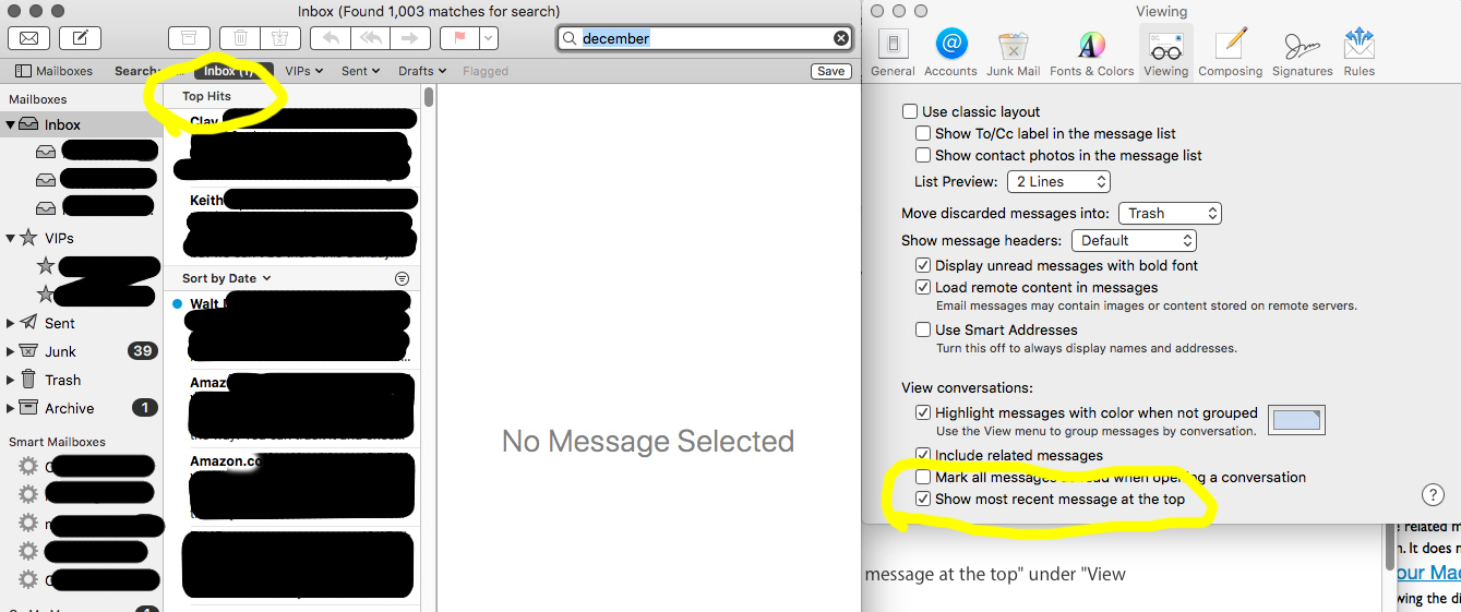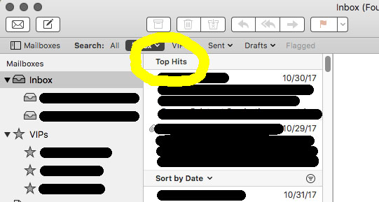 3. You have to use the Search feature in Mail to make “Top Hits” appear.