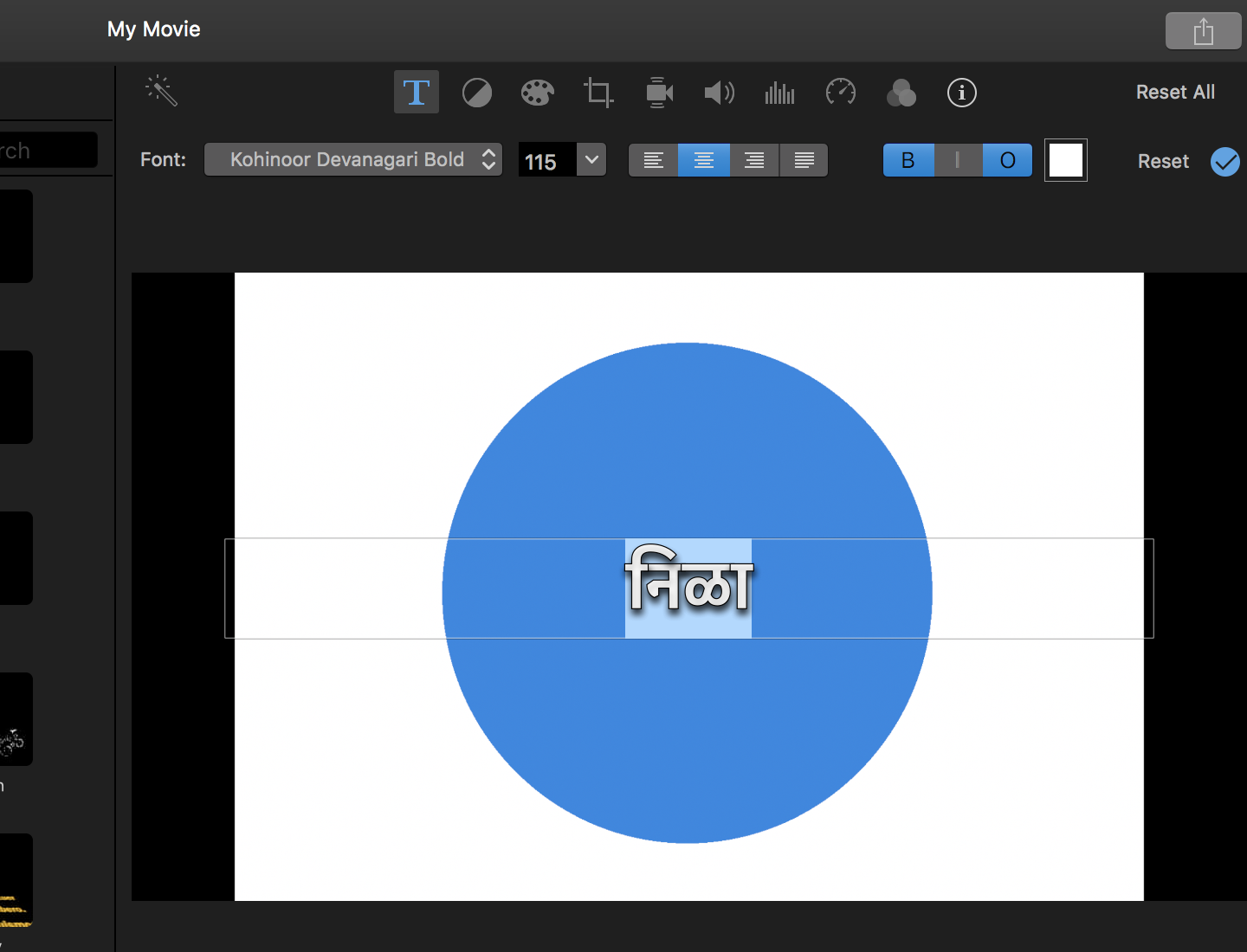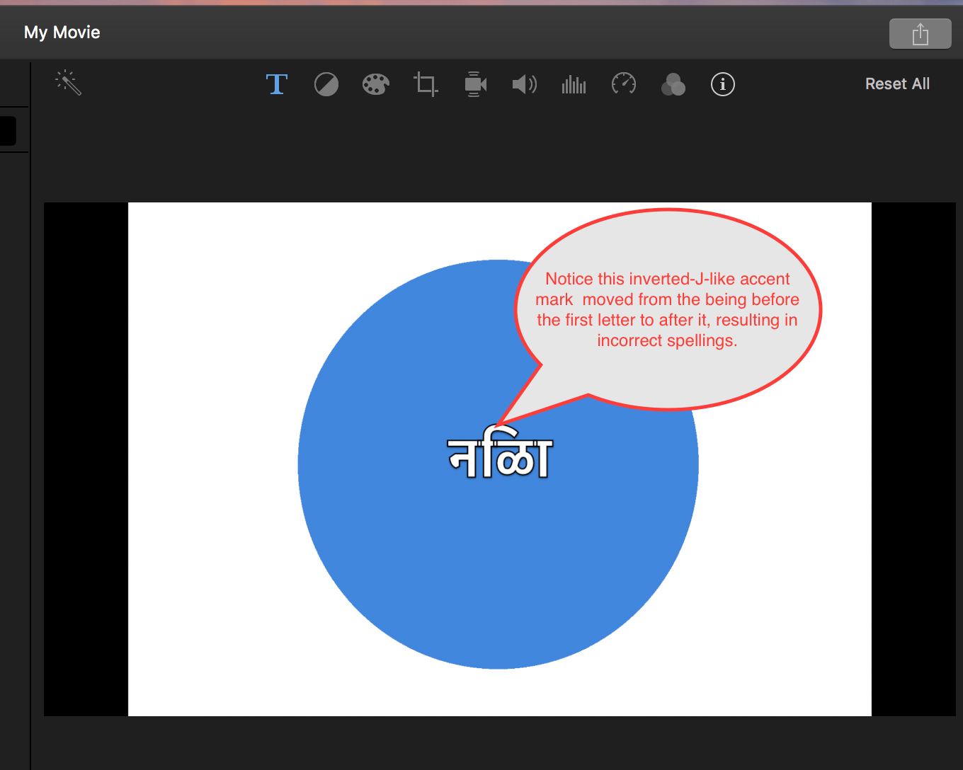 iMovie: Devanagari font autocorrects accent mark to wrong spelling