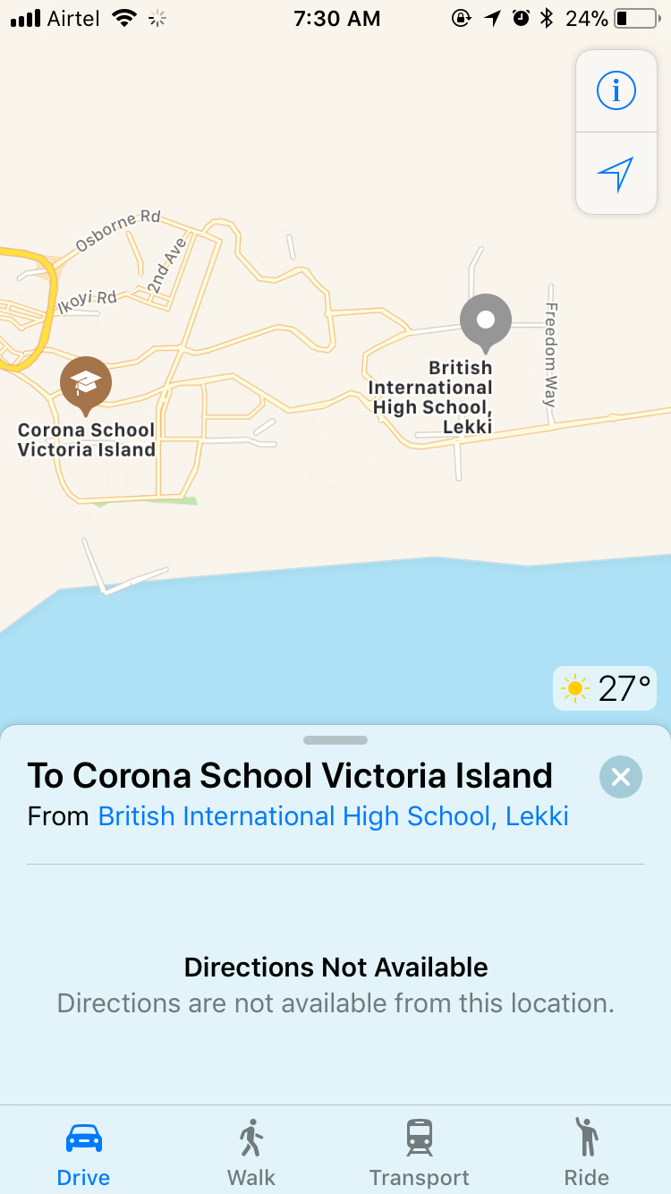 I reside in Lagos Nigeria and have a couple of friends that use the Apple map successively in Lagos. But when it comes to my turn the map keeps saying direction not available. I’ve updated my iOS to 11.02