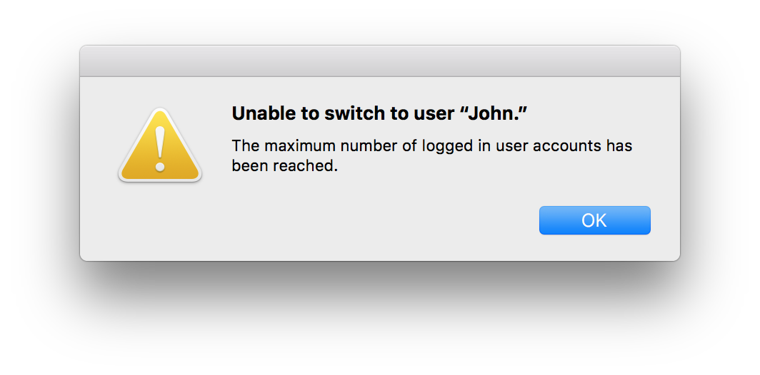 I have been running my iMac for years with seven active accounts established (family members, emergency admin, etc). I have always been able to be logged into all seven accounts simultaneously, which I do from time to time just because). Since upgrading to macOS 10.13 High Sierra when I attempt to login to the sixth account a pop-up window opens alerting me that the maximum number of accounts able to be opened has been reached. I have to logout of one the open accounts in order to login to another. The maximum numbers appears to 5 accounts now that can be logged into simultaneously.