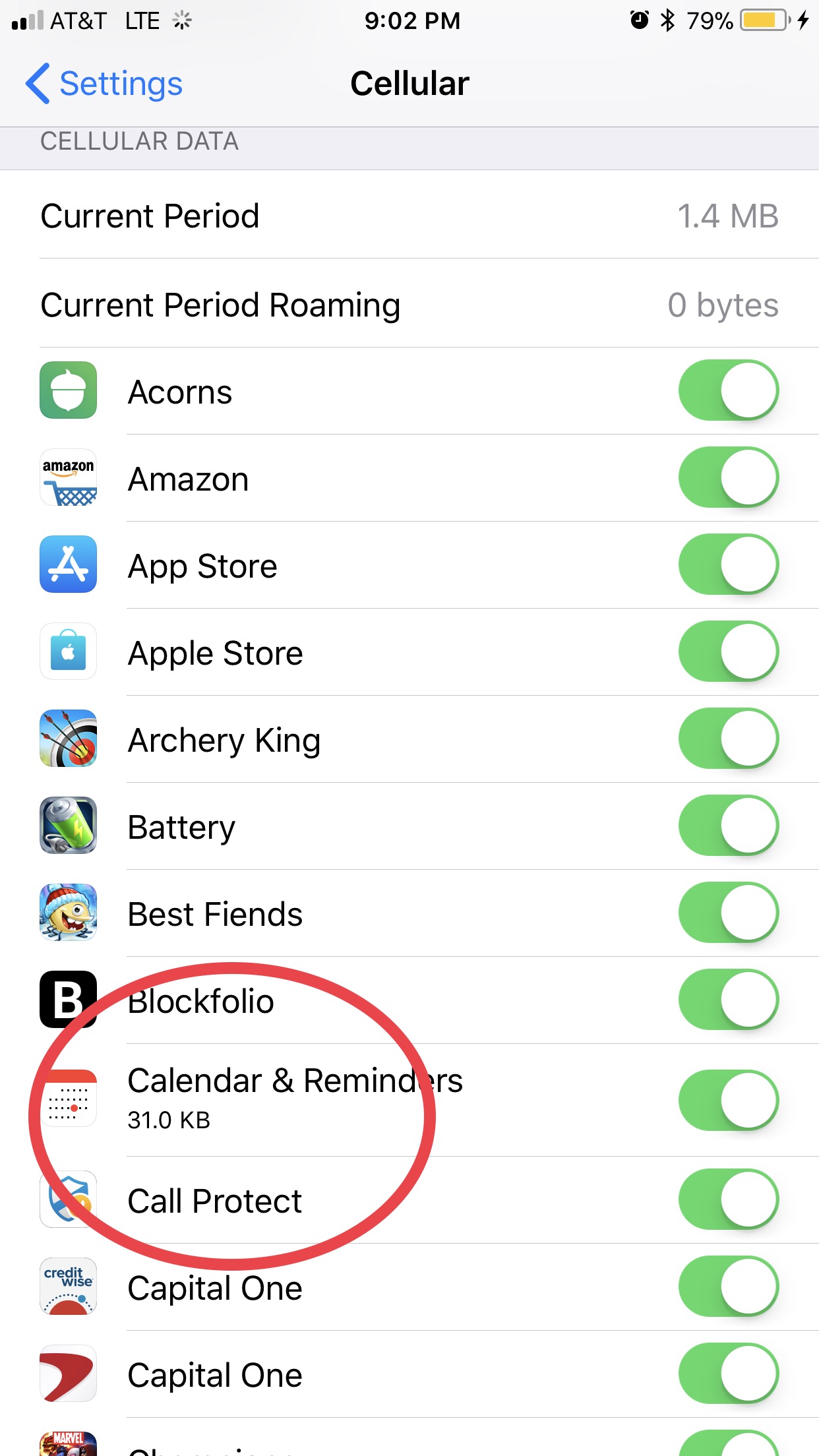 More concerning, as this one impacts the cost of my Cellular Providers data usage plan. Over the space 30 minutes away from WiFi :