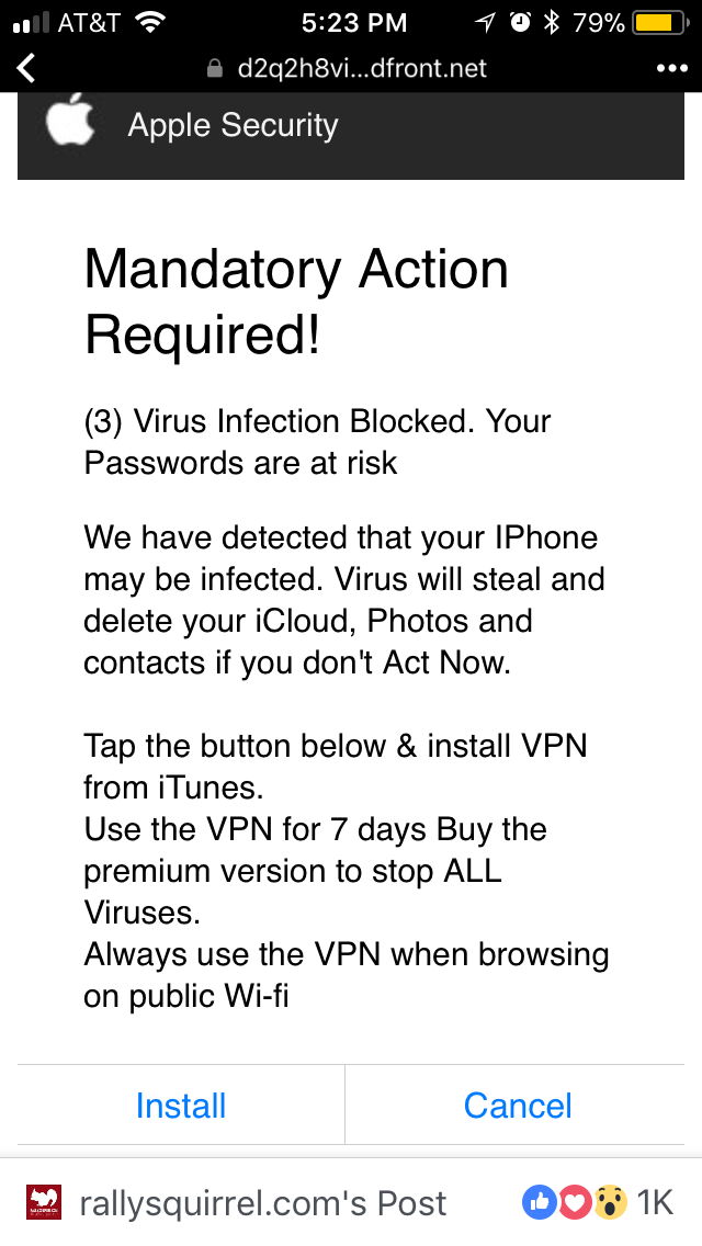 Message about VPN on Facebook