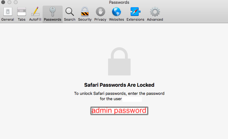 Safari preferences password is .