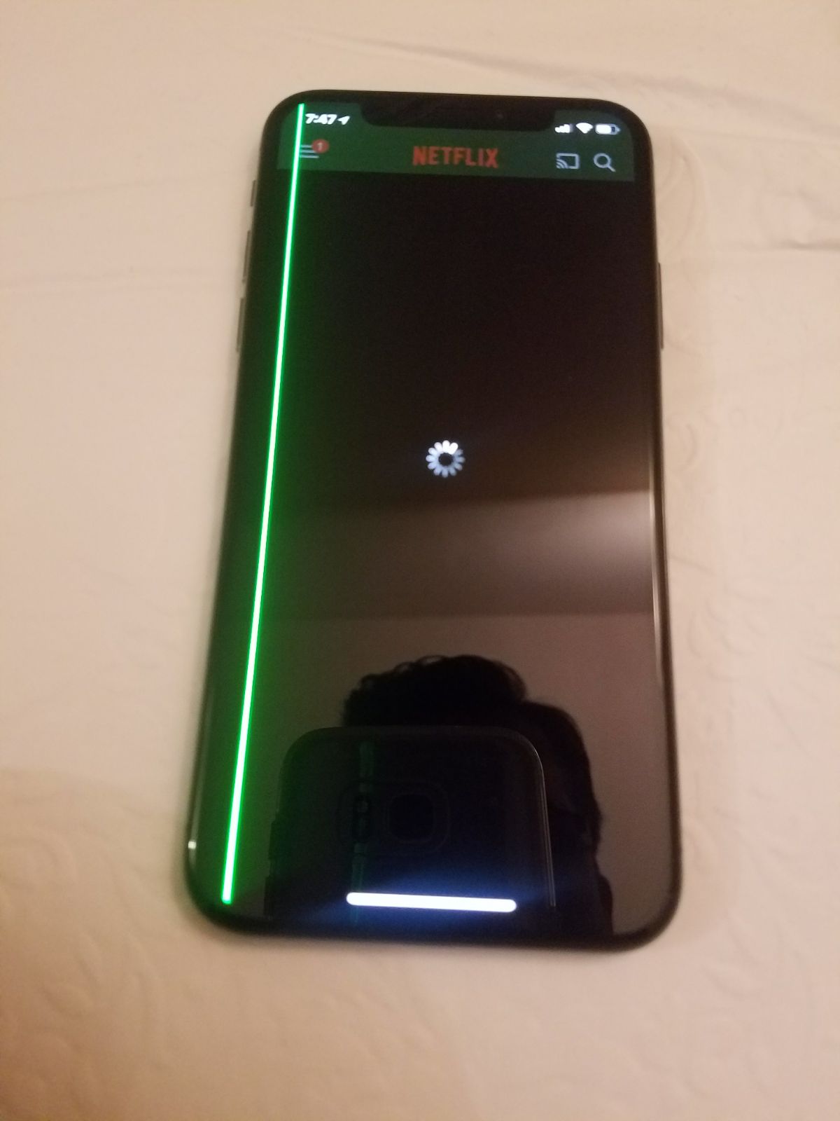Day one and a bright green line has appeared down the right side of the iPhone X. Anyone else having this issue?