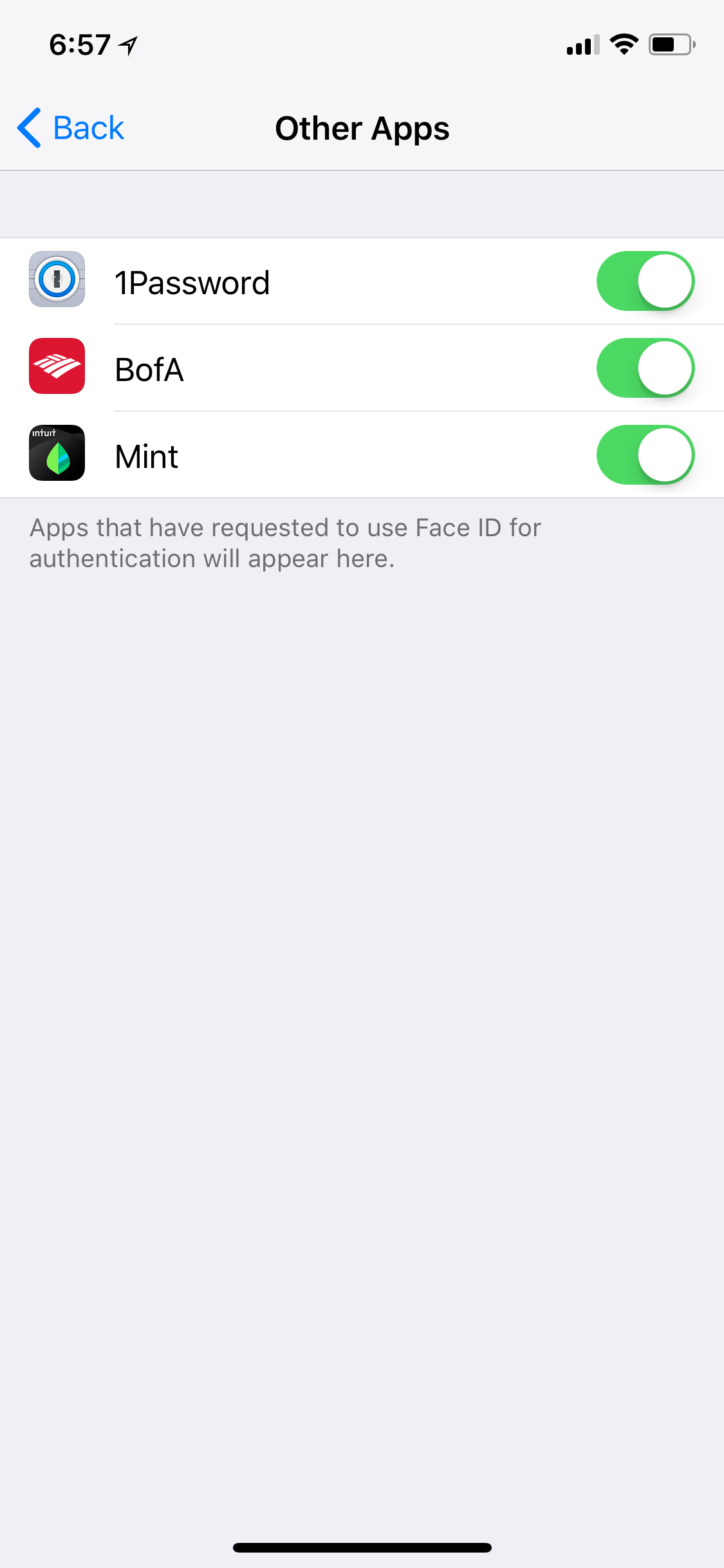 This morning, I woke and turned on the phone - FaceID unlocked the home screen. I tried to open my BofA app to see if a check had cleared and found the home screen prompting me for a password even though FaceID was enabled for that app.