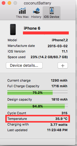 What is the average heat temperature in an iPhone 6?