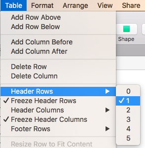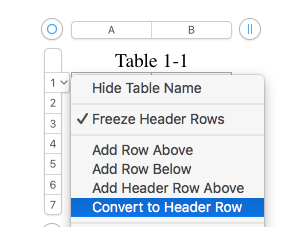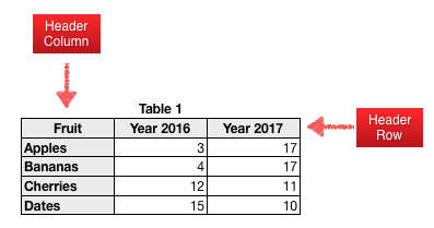 Row 1 is a Header Row.