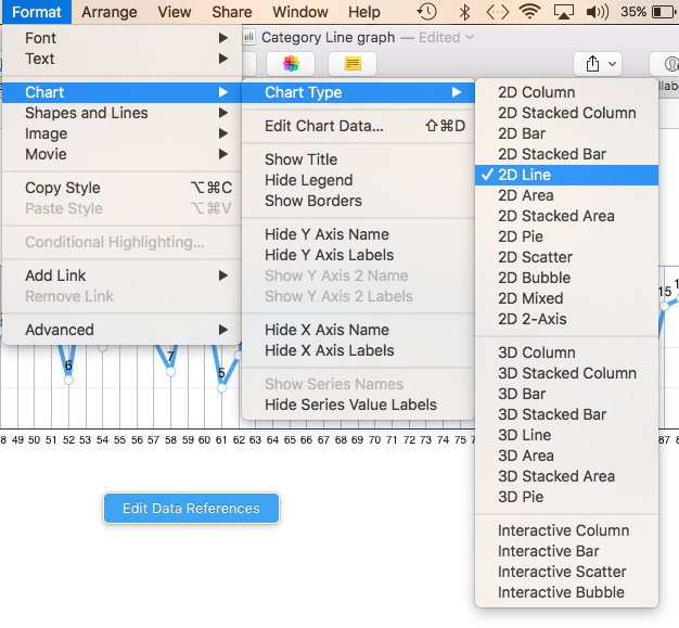 A 2D Line graph is one of the Category graphs where the X-axis consists of discrete Categories (in your example, Day Number).