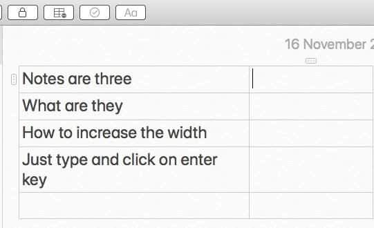 how to adjust table column width in notes