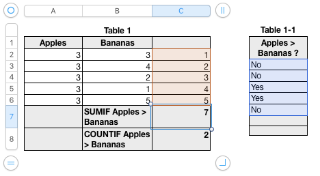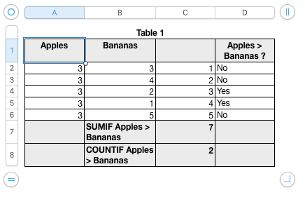 The collection of test values must be the same size as the collection of sum values, which doesn't permit test values taking two columns and the sum values taking only one. Ian handles that issue by doing the comparison with a formula that produces a single value ("Yes" or "No") indicating whether the pair of values in each row of columns A and B meets the condition for being included or excluded from the SUM or COUNT, making it possible to place the (new) test values in a single column, fulfilling the requirement that the ranges holding the test values and the sum values be the same size.