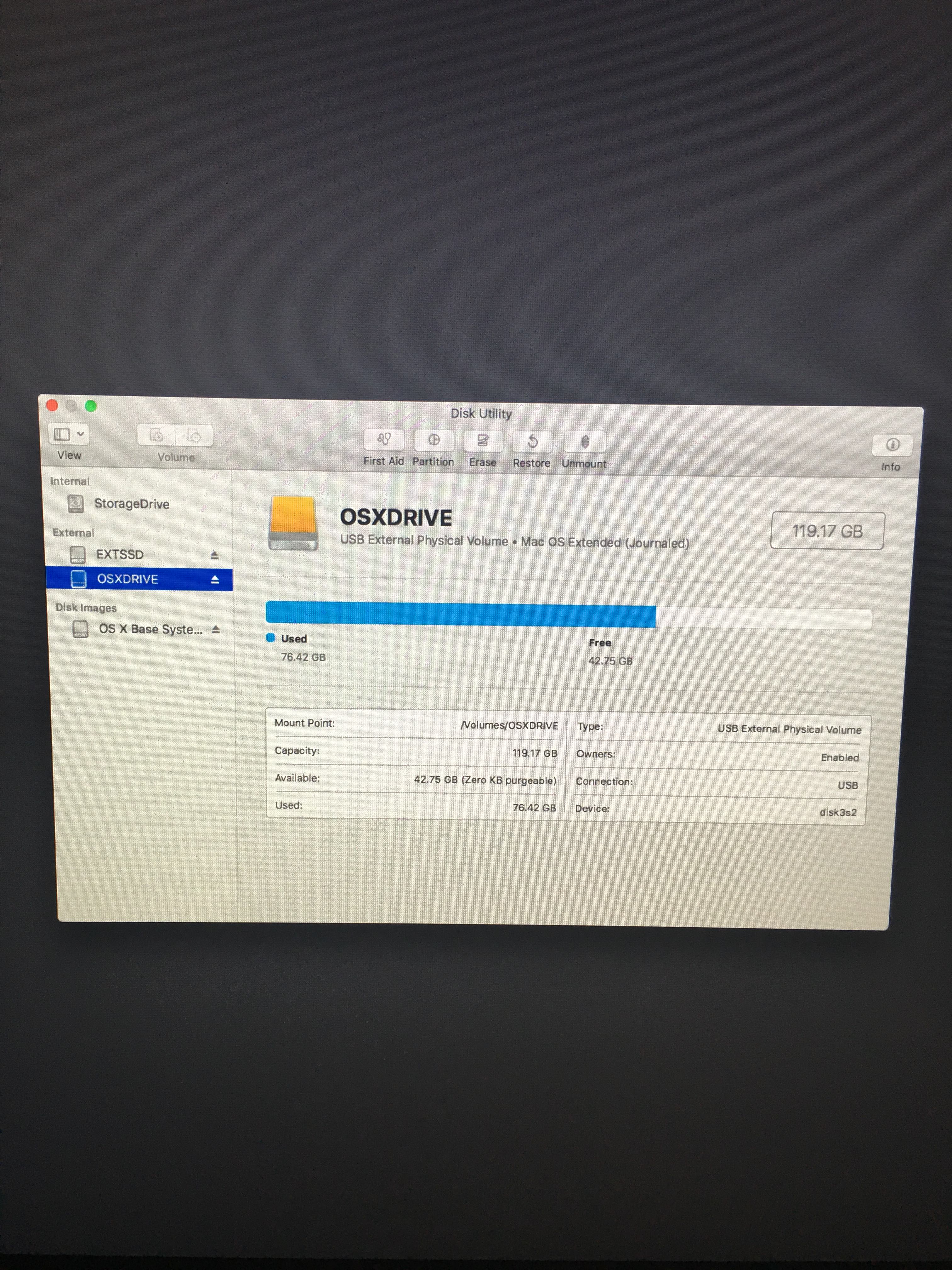 2: Apple_HFS OSXDRIVE 119.2 GB