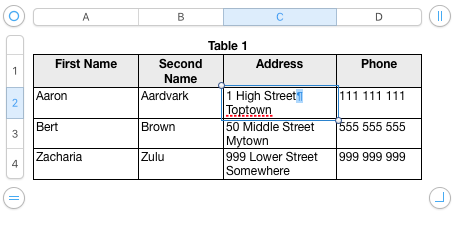 For example if you have the following table in Numbers...