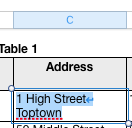 - Click in Numbers table containing the addresses