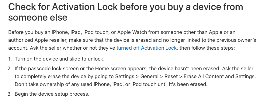 Read carefully "Check for Activation Lock before you buy a device from someone else" here: