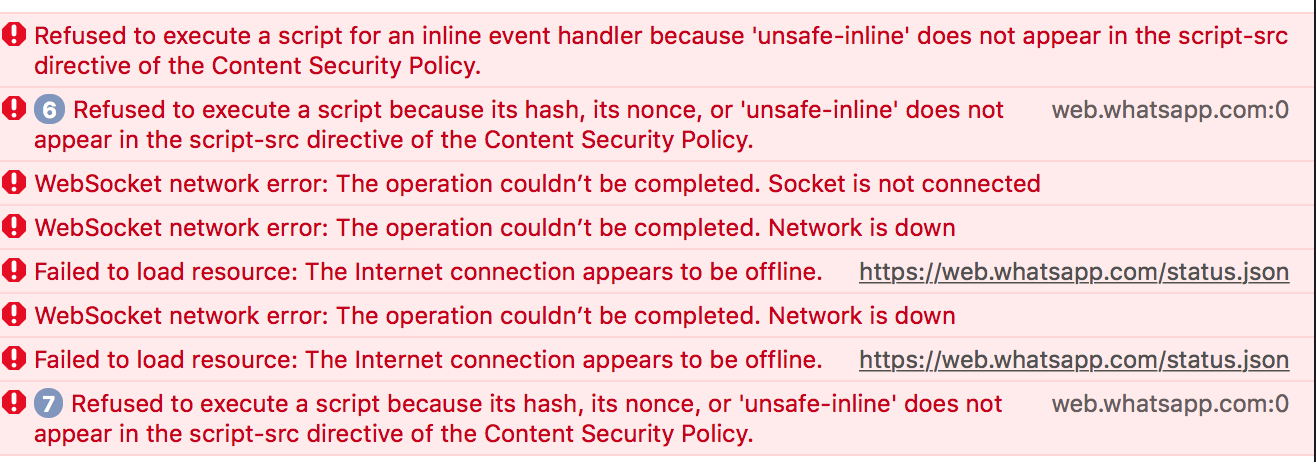 I checked the latest info about WhatsApp web: WhatsApp FAQ - How do I use WhatsApp Web? it just says that it's supported the latest version of Safari. Which version of the browser are you using? I need to admit that I use usually WhatsApp desktop but with my Safari Version 11.0.1 (13604.3.5) also the Web version is working correctly.