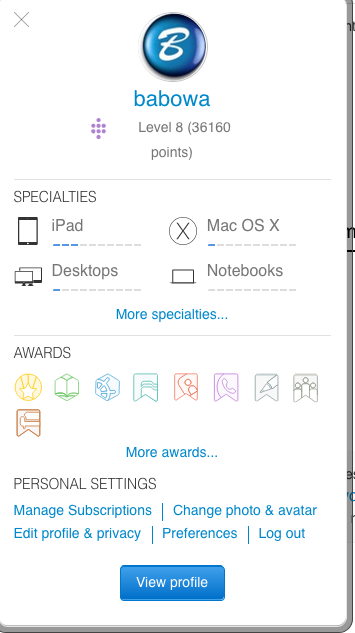 And, when you click on your name, it should show you this type of popup window (if you are signed in):