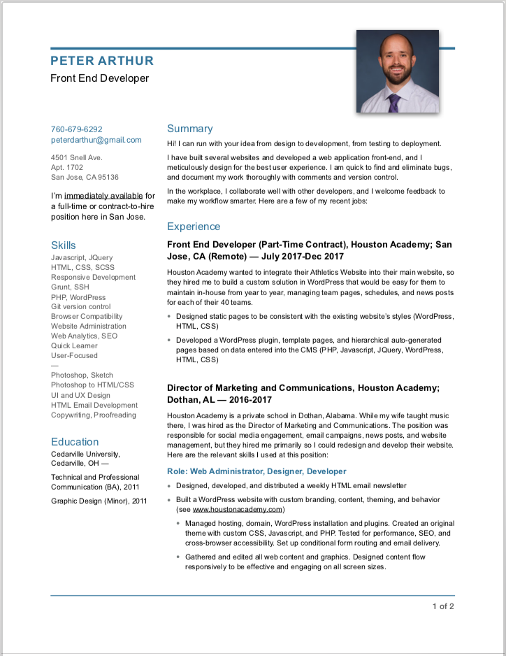 I used a Pages prebuilt template to create a Resume with two columns. When I export as .docx and open the exported document in Pages on a Mac, it looks fine, but when I open it in Google Docs, it is a single column document (and the preview of the document in my Finder is also single-column). Not only that, but the second column shows up first, so my NAME is not even at the top of my own resume ⚠ I don't have a PC, nor access to MS Word. How do I know that when hiring managers see my document that it is formatted correctly? They often request strictly "Word Documents".
