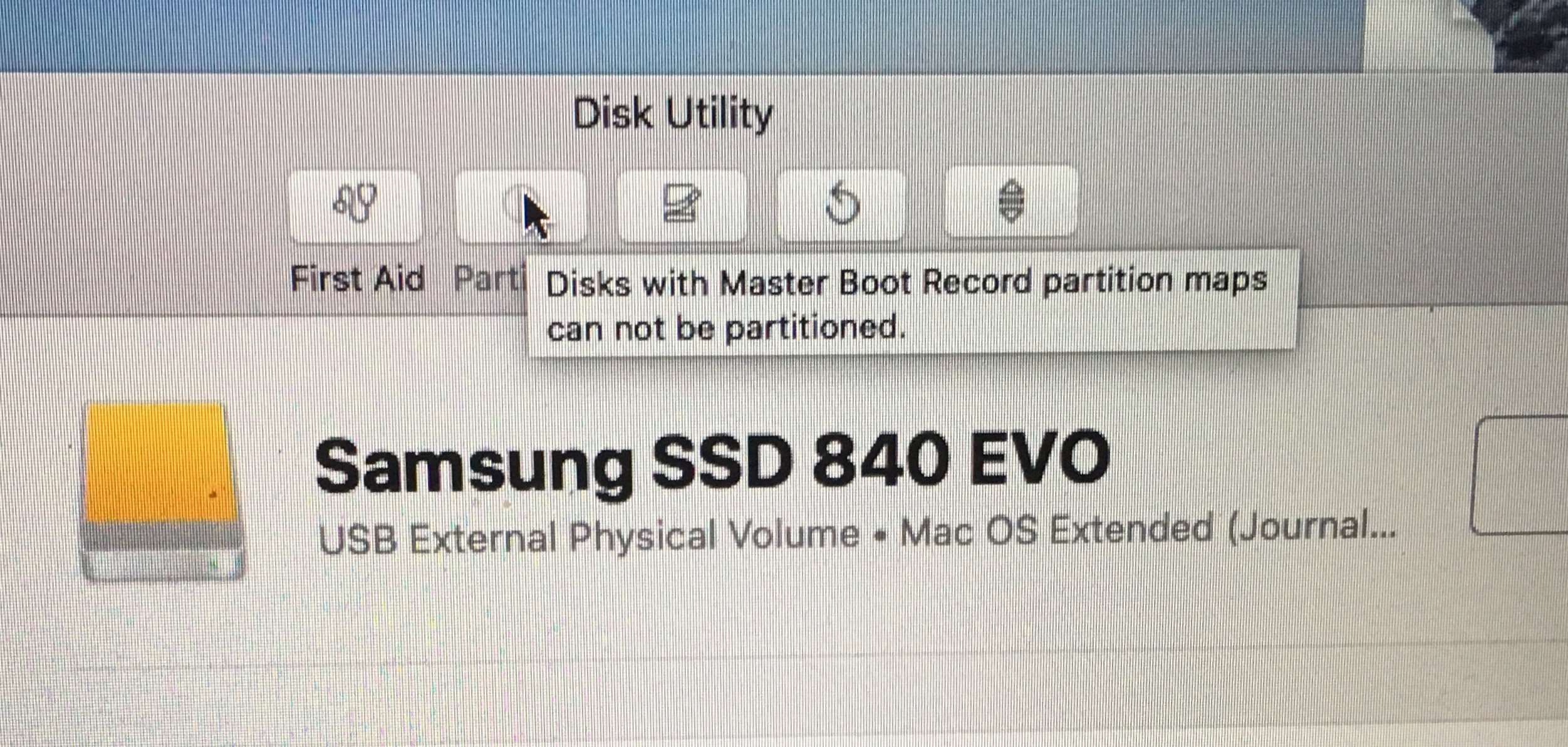 “Disks with Master Boot Record partition maps cannot be partitioned.”