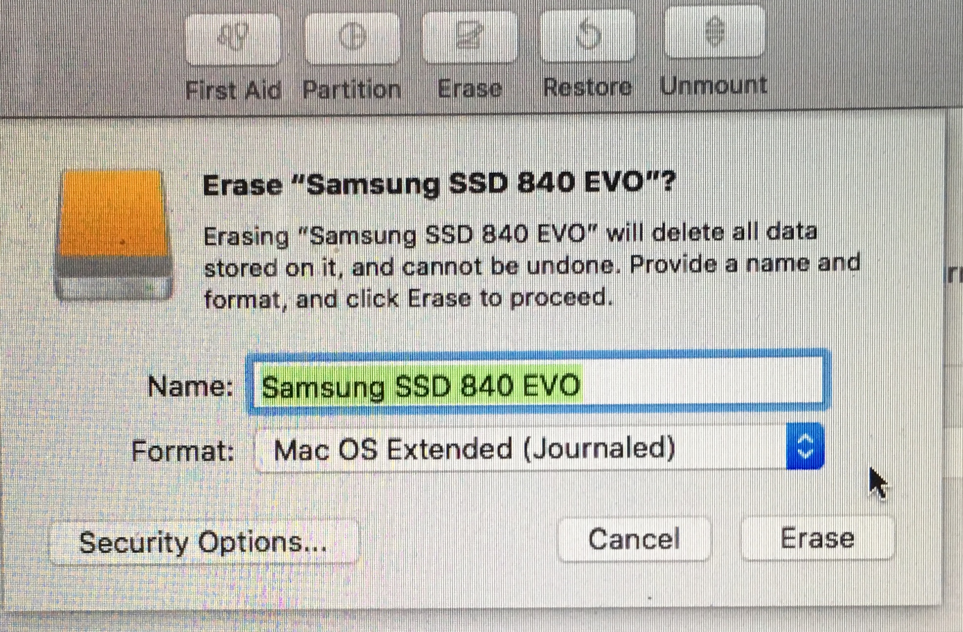 Samsung SSD 840 EVO upgrade not partitioning in MBP Late 2011