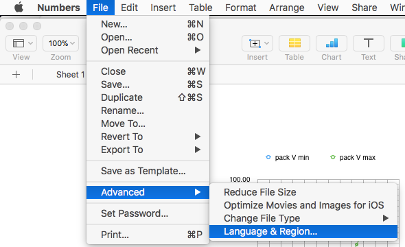 I suggest setting the language and region for your document to match using the Numbers menu item:
