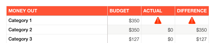 Column B contains the monthly Budget amounts for each category, entered directly.