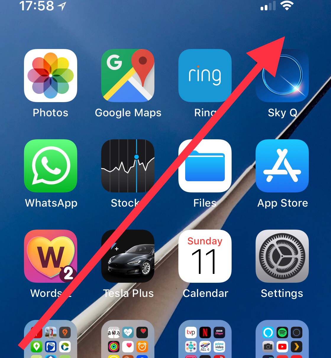 On iPhone X you need to swipe down from the right hand side to see battery icon.