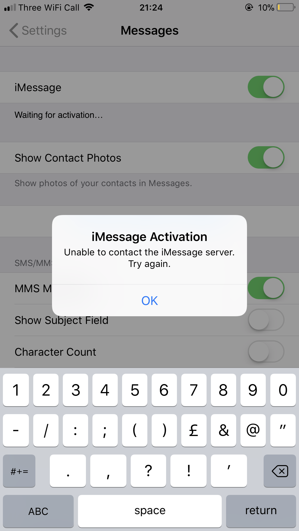 I have changed my number in Settings.. Phone.. to my new number. However when I go onto Settings.imessage and I turn the iMessage off and on again, it’s just saying “waiting for activation” and when a click on Send & Recieve, it’s showing my old number (which I don’t want) but it’s showing as loading, and not with a tick to the left hand side. So now when I text with iMessage it’s showing as my Apple ID address and no numbers.