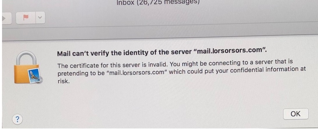 Mail can't verify the identity of the server "mail.lorsorsors.com".