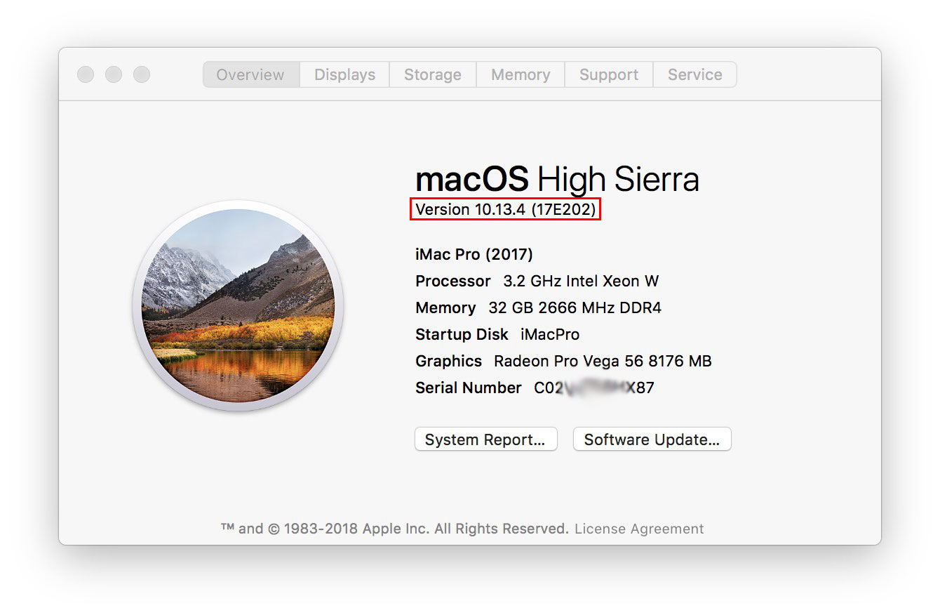 High Sierra v10.13.4 (17E199) on a new (late 2017) iMac Pro, 3.2 HGz Intel Xeon W, 1Tb SSD (APFS) User uploaded file