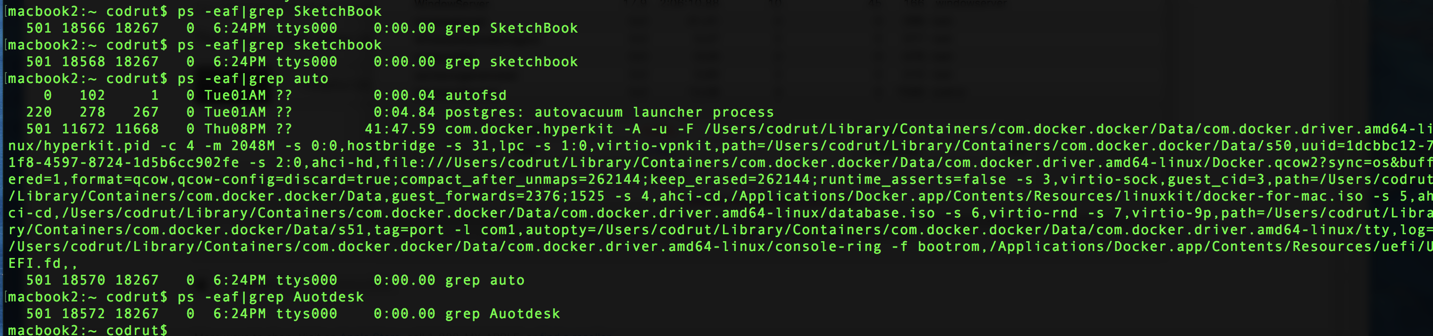 But anyway your research using the terminal check only file containing the name of the software, if the daemon is named as example autosktch it won't be listened by your query.