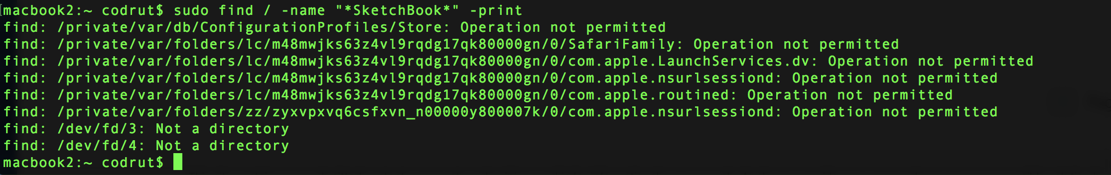 macbook2:~ codrut$ sudo find / -name "*SketchBook*" -print