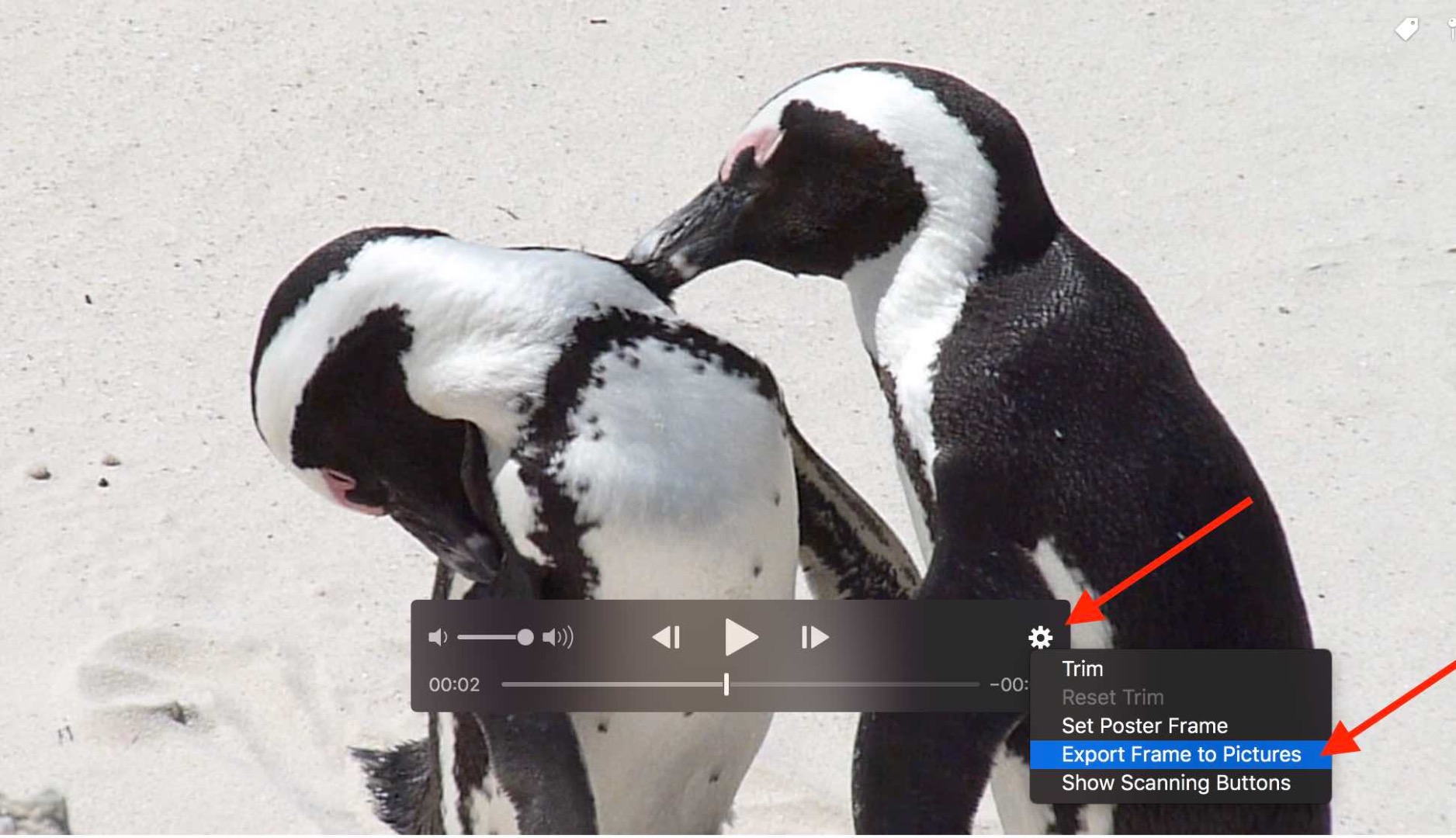 If you imported the videos to the Photos.app you can also save selected still frames to the Pictures folder, when you open the video in Photos: While viewing the video, click the gears icon in the video controlas and select "Save frame to Pictures". You will find the saved image file in the Pictures folder.