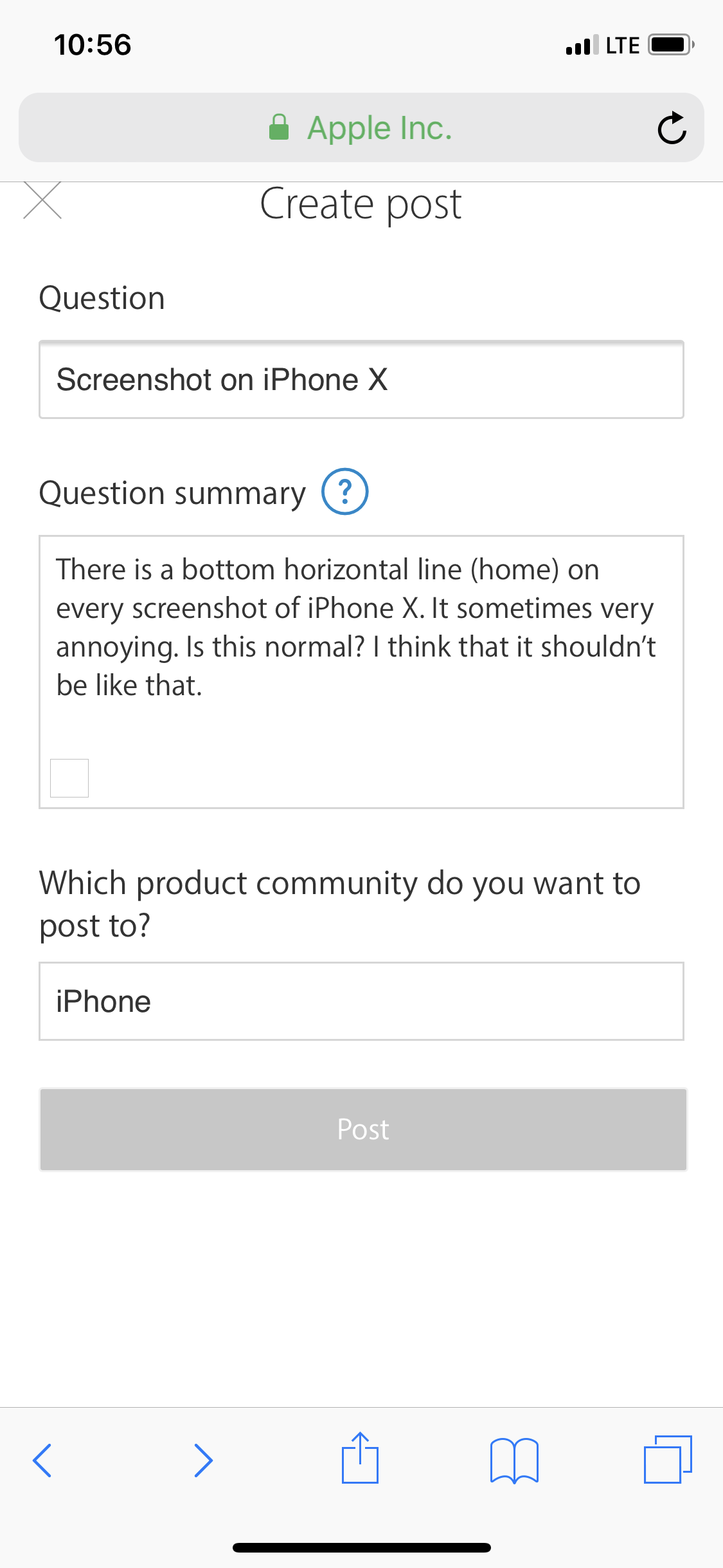 That is normal. That is the home indicator bar which is rendered on almost every screen most of the time. Screen shots do not remove it. You can send your feedback to Apple here: Product Feedback - Apple