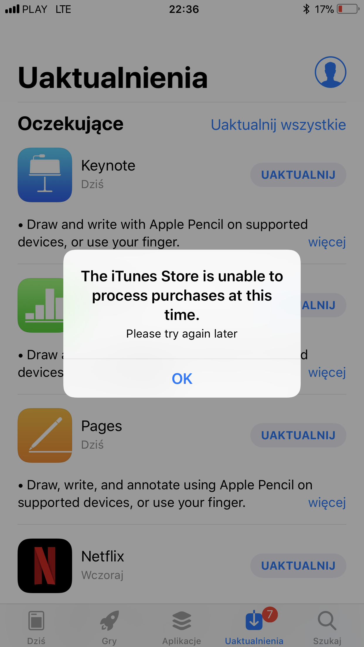 I've been getting that message "The iTunes Store is unable to process purchases at this time" every single time I open an app that was downloaded or purchased from the iTunes store. My software on my phone is up to date on its current version (iOS 11.2.2). So how can I stop that message from coming up every time I open an app???