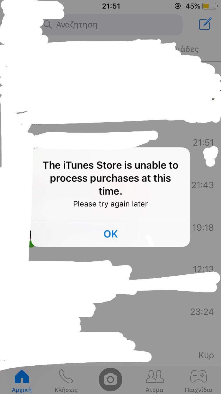 I've been getting that message "The iTunes Store is unable to process purchases at this time" every single time I open an app that was downloaded or purchased from the iTunes store. My software on my phone is up to date on its current version (iOS 11.2.2). So how can I stop that message from coming up every time I open an app???