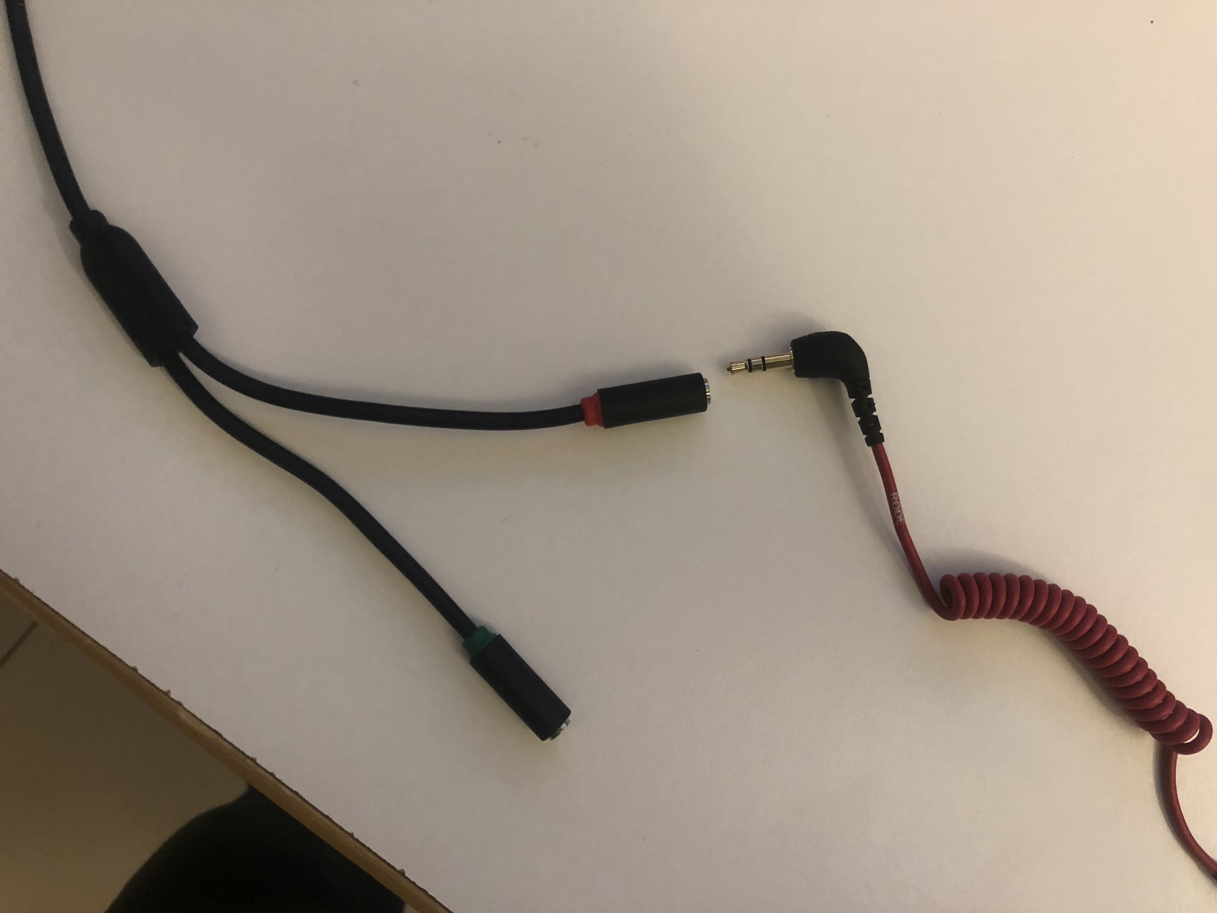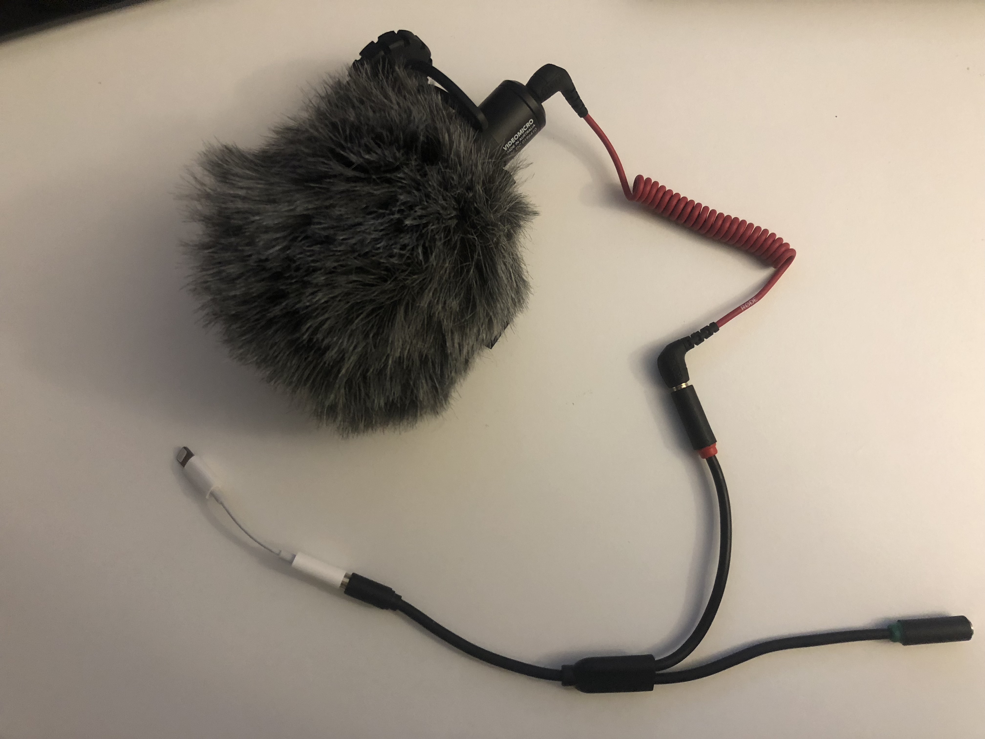 Iphone --> Lightning Connector --> Lightning to 3.5mm Stereo Adatper --> Stereo Male Y Cable 3.5mm --> Mono 3.5mm Female --> Mono 3.5mm Male --> Mono 3.5mm Male --- 3.5mm Female at the back of the micrphone like this setup in the picture. In the Filmic Pro app it will appear as Headphone Microphone User uploaded file