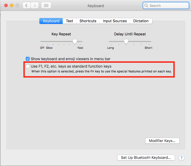 - Select "Use all F1, F2, etc. keys as standard function keys"