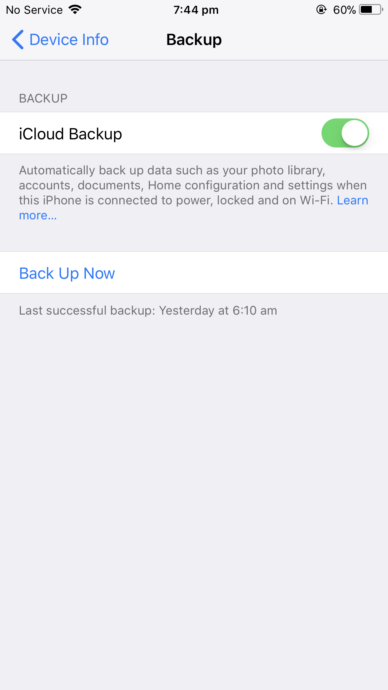 However, I would keep an eye on it. Keep checking and as long as you see that it is successfully backing up and it shows the time of the last backup, I think you will be OK. But like I said, the Never message should also go away.
