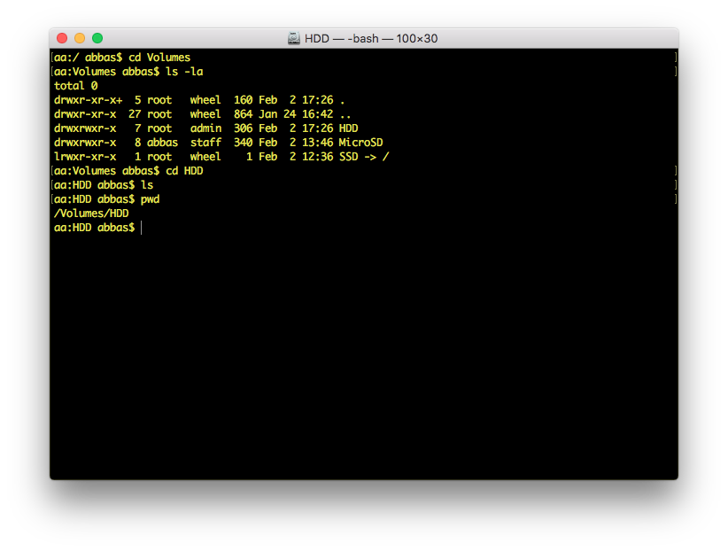 When I type cd HDD, I see: