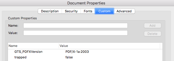 When you open this converted PDF in Adobe Acrobat Reader DC, it will have a thin green border around the document view to let you know it is PDF/X-1a content, and the following also appears in the Reader PDF properties: