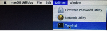 Move the mouse pointer to the menubar at the very top of the screen, click "Utilities” and then select "Terminal"
