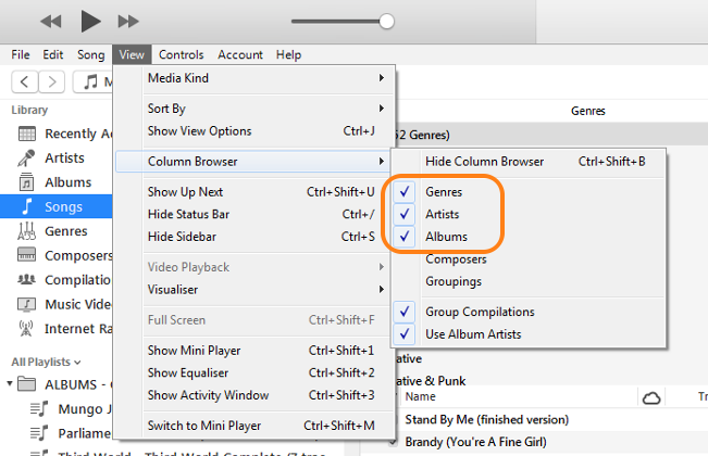 Is there a way to show music in list view for Itunes 12.7.3 - not just for whole library - but in each Artist category?