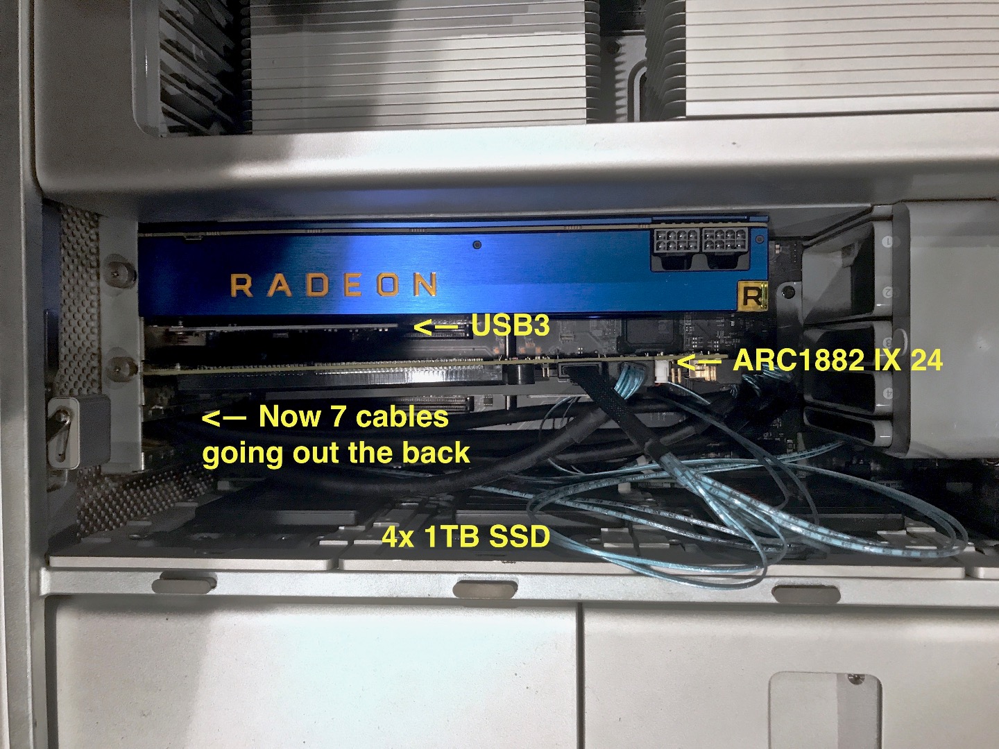 The first order of business was installing High Sierra, which has the correct drivers. This was no easy task. High Sierra requires a firmware update for my Mac Pro, but the updater did not like either the R9 290x or that I was booting from the Areca card. So I had to clone my startup to a FW800 drive, replace the R9 290x with my original Radeon 5870 from Apple, boot from the clone, and then I could complete the upgrade.