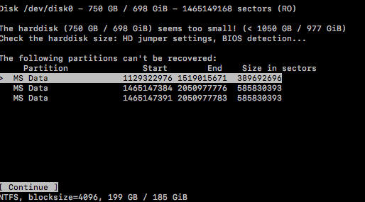 gpt show: /dev/disk0: mediasize=750156374016; sectorsize=512; blocks=1465149168
