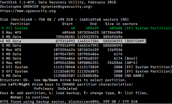 gpt show: /dev/disk0: Sec GPT at sector 1465149167